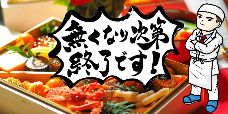 おせち料理はお届け時期が限定される商品特性上、受付できる予約数に限界があります。各商品は売り切れ次第「予約受付終了」「販売終了」となりますのでお早めにご検討くださいませ。