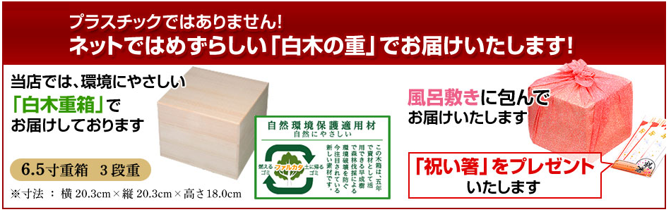 白木重箱は高級感があり、環境にも優しい素材でできています。